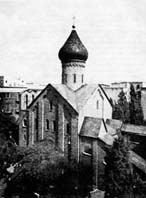 Заказ на проект получил А.В. Щусев, протекцию которому составила, скорее всего, председательница Палестинского Общества Елизавета Федоровна, для которой зодчий построил Марфо-Мариинскую обитель в Москве. Удивительную карьеру сделал этот архитектор: начав с церквей, он выстроил мавзолей для мумии вождя, закончив сталинскими дворцами.