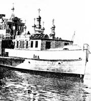 Немногим более 80 лет тому назад «Астраханские ведомости» писали о том, что в воскресенье 11 апреля 1910 года в Астрахани было совершено освящение Пловучего храма. У дебаркадера пристани стояла только что построенная епархией и блистающая белизной церковь-пароход во имя Святителя Николая. В лучах солнца ярко горели семь позолоченных глав. Большой белый треугольник флага с крестом на середине полотнища оповещал о назначении этого необычного сооружения. Тщательно выписанные церковно-славянские литеры на бортах составили официальное название: «Святитель Николай Чудотворец».