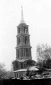 Этот храм, точнее, оставшаяся от храма колокольня, находится в тульском крае в старинном русском городе Веневе. Начали строить храм с трехярусной колокольней в 1801 г. После окончания войны с Наполеоном строительство было продолжено. Во ознаменовании победы над врагом колокольню решили сделать пятиярусной. Ведь веневское ополчение принимало участие в сражениях у Тарутина, Малоярославца и др. Однако к 1817 г. было воздвигнуто только четыре яруса. В 1834 г. колокольня сильно пострадала от пожара и только к 1860 г. была восстановлена. В конце 30-х годов церковь была разрушена, а вот попытка сбросить крест с колокольни и разрушить ее не удалась (только ободрали купол и шпиль). Одного из активных разрушителей собора Бог наказал тем, что ему парализовало ноги. В 1942 г. кирпич, оставшийся от разрушенной церкви, стали использовать для восстановления веневских улиц. На Николу-весеннего батюшка из другой веневской церкви служит на месте разрушенной церкви.